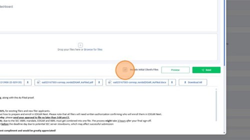 Ensure the "Include Initial Client's Files" checkbox is marked so the client's files are attached and hit "Send."