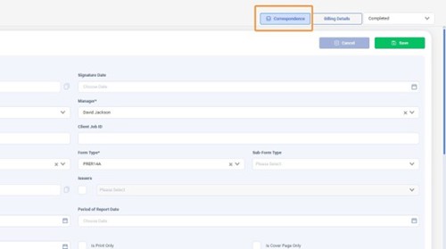 Click the "Correspondence" button.