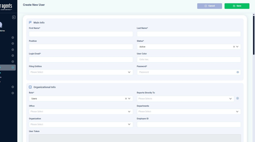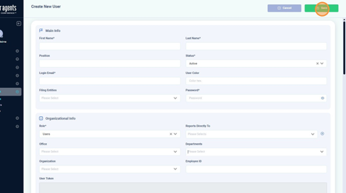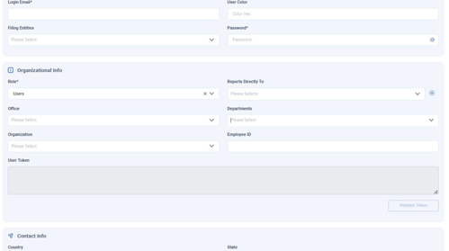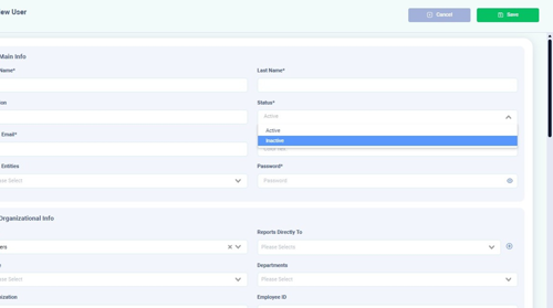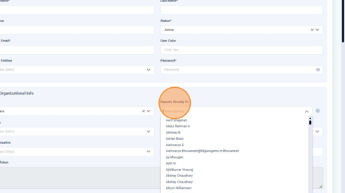 Select who the user reports to from the “Reports Directly To” dropdown. Click the “+” to add another “Reports Directly To,” in case the user reports to multiple managers.