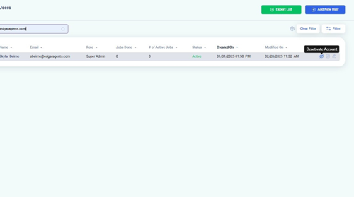 OR, click the "Deactivate Account" icon from the list of users on the System Users page.